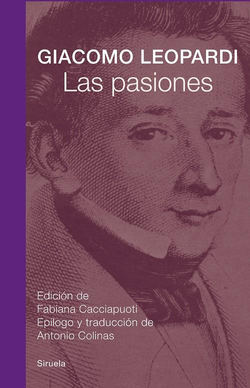 «Tratado de las pasiones» es el título de una nota autógrafa de Leopardi (1798-1837) en la cual se enumeran 164 fragmentos del Zibaldone. Se trata de un índice temático redactado en 1827 junto con otros índices del mismo tipo dedicados a ambiciosos proyectos. Se puede plantear la hipótesis de que Leopardi tratara de fijar un «sistema» filosófico que debía comprender diversas áreas del saber extraídas de la enorme mole de los apuntes que había iniciado en 1817 y que continuaría tomando hasta 1832. El proyecto, que culmina en 1827 con la redacción de los índices temáticos, no sería desarrollado posteriormente. Los fragmentos sobre las pasiones, aquí recogidos y ordenados según el índice leopardiano, constituyen un «material de trabajo» que quedó inconcluso. Aunque «provisionales», los textos sobre las pasiones representan un conjunto de pensamientos, articulado y unitario, acerca de temas relativos a las diferencias de sensibilidad que hay entre el hombre antiguo y el moderno, entre el hombre «natural» y el transformado por la modernidad, entre sus amados autores grecolatinos y las lecturas de sus coetáneos. Al fondo de estos complejos y agudísimos textos siempre descubrimos la vida del propio poeta, revelada en algunas leves anécdotas y expresada, con amargura y lucidez, gracias a su inconfundible «filosofía del pesimismo».