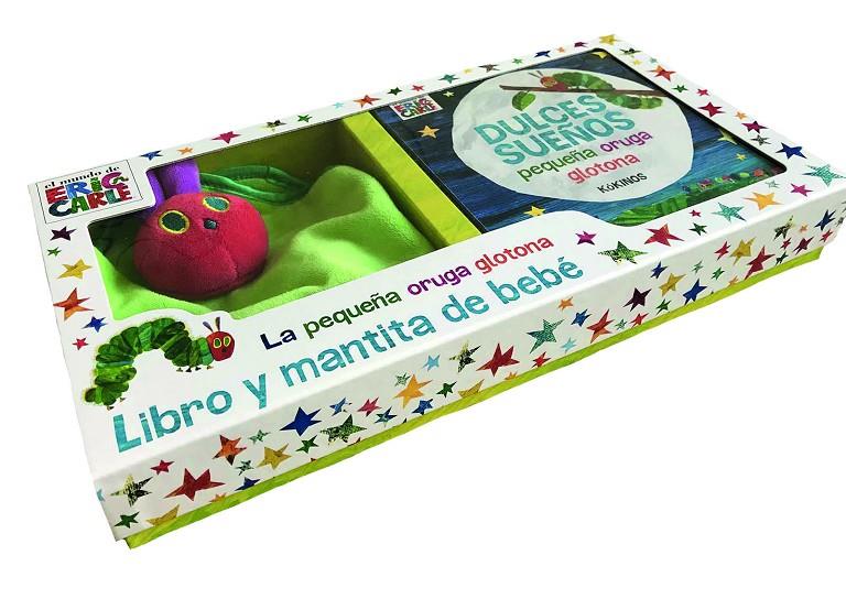 Acurrúcate con La pequeña oruga glotona. Set de regalo con cuento de buenas noches y mantita suave para abrazar y acariciar.