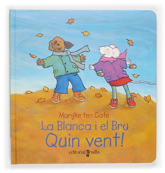 Fa molt vent i la Blanca i el Bru s'abriguen bé i surten a jugar amb el vent.