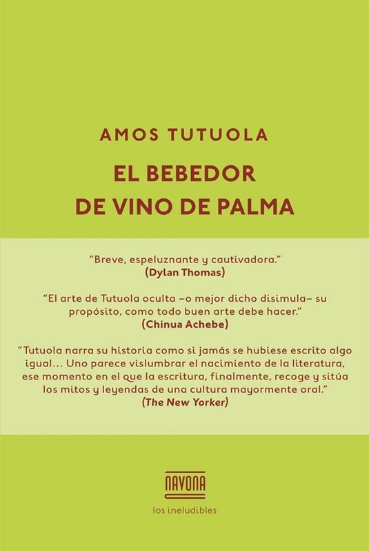 El bebedor de vino de palma narra las andanzas de un bebedor empedernido en busca del paradero de su sangrador de vino, fallecido repentinamente, en la tierra de los muertos. Un periplo por bosques, montes y aldeas en el que nos adentramos en un territorio mágico poblado de espíritus, seres maravillosos y animales feroces. El bebedor deberá enfrentarse a multitud de peligros y obstáculos, que superará gracias a su astucia y al uso de todo tipo de hechizos y ardides. Nutriéndose de las fábulas yoruba, Tutuola forja una traviesa parodia épica narrada con un estilo directo y fresco. Una magnífica novela, ya convertida en clásico, con la que el autor se erigió en precursor de los maestros del realismo mágico y del realismo animista africano.