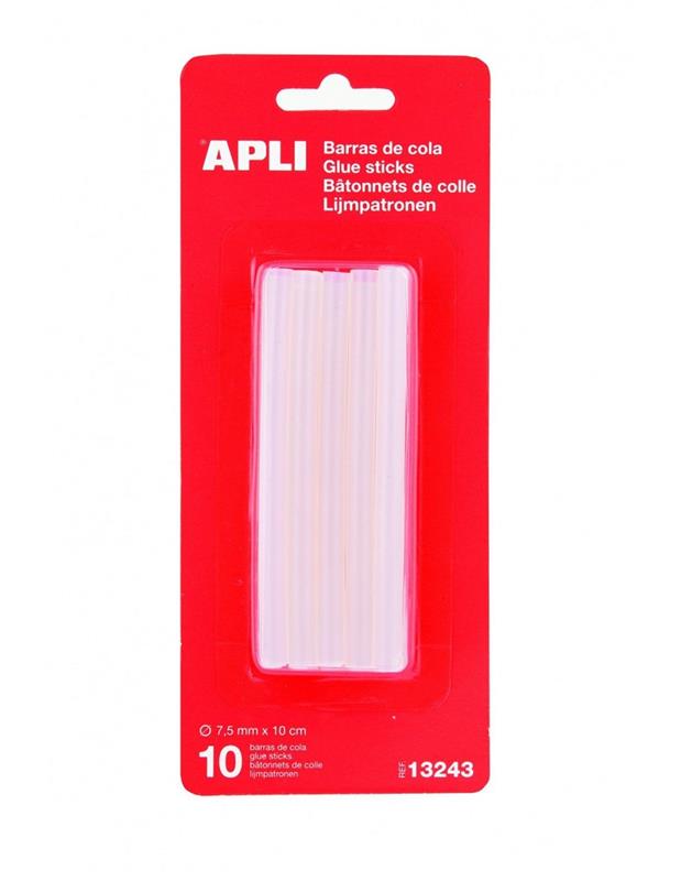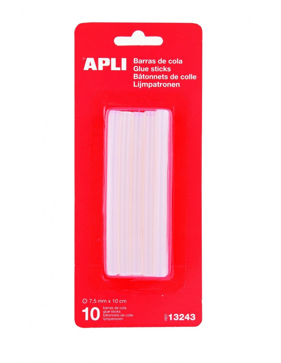 Recambio de 10 barras de cola de adhesivo termofusible de Ø7,5 mm x 10 cm. Compatibles con pistolas de cola para barras de Ø7,5 mm. El complemento más eficaz y profesional para realizar tus pequeños trabajos de bricolaje en el hogar y manualidades. Su composición permite obtener una gran precisión y limpieza en los trabajos realizados, de una manera fácil y segura. Barras de adhesivo hot melt que no gotea. Aplicación de adhesión instantánea en multitud de superficies: madera, plástico, cerámica, metal, piel, textil, goma EVA, fieltro, cartón y otros muchos productos. Después de aplicar, dejar actuar entre 20 y 30 segundos. Compatibles con la mayoría de pistolas del mercado.