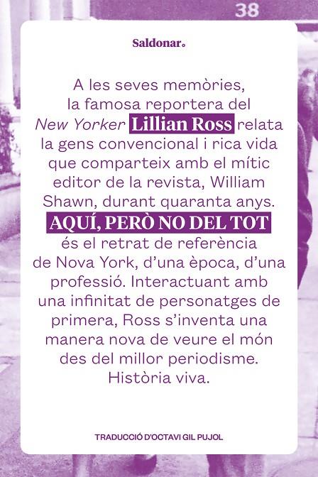 Quaranta anys d’una normalitat apassionada i d’un periodisme trencador en un sol llibre de memòries. Lillian Ross explica la insòlita història de la vida que va compartir amb William Shawn, llegendari editor del New Yorker, al mateix temps que revela les seves connexions amb desenes d’icones il·lustres de l’època que encara avui tots coneixem: Charlie Chaplin, Hannah Arendt, Marlene Dietrich o Federico Fellini, per esmentar-ne només quatre.