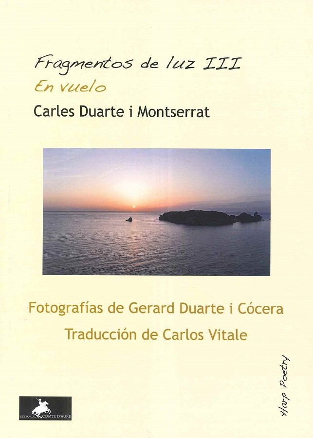 Tercer volumen de la serie de "Fragmentos de luz", fruto del diálogo entre fotografías de Gerard Duarte i Cócera y poemas de Carles Duarte i Montserrat. En esta ocasión los autores se ha decantado por uina aproximación diferente a la imagen, con fotografías que mayoritariamente han sido realizadas con la cámara de un dron y que a menudo han sido conseguidas por Gerard Duarte coincidiendo con amaneceres al lado del mar. Incluye imágenes y poemas sobre lugares, a veces situados en entornos naturales y en otras ocasiones en escenarios urbanos, donde el gesto de la luz adquiere un protagonismo decisivo.